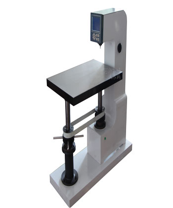 試樣是支承于安裝在絲杠上的試臺(tái)上。轉(zhuǎn)動(dòng)升降試臺(tái)的手輪,試臺(tái)則上下移動(dòng),因而使 試樣能處于所需位置。
